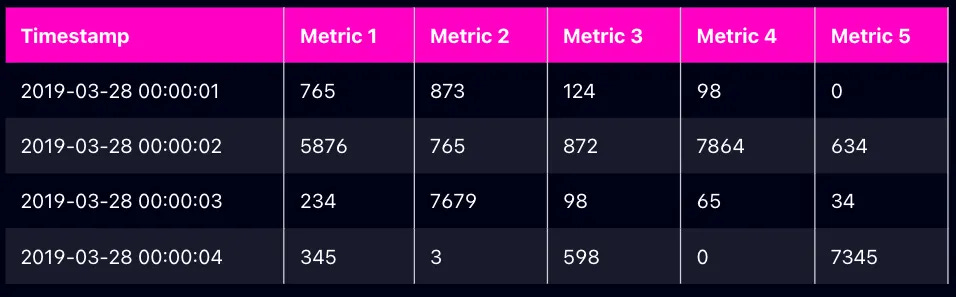 VictoriaMetrics 是一款时序数据库(TSDB)—— 专为处理带时间戳的数据而优化,例如随时间收集的指标、事件和测量数据。时序数据库的存储方式如下: